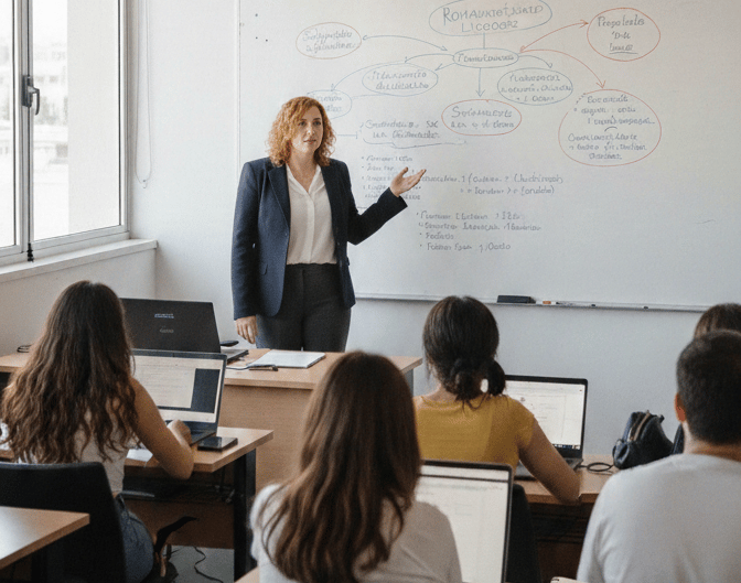 Tengo un pie en la tradición y otro en el presente: hablo de predicados y modificadores, pero también de redes sociales y cultura pop. Me importa la forma, pero nunca pierdo de vista el fondo: quiero que mis estudiantes se expresen con claridad, fuerza y estilo propio.